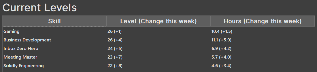 Simply associating a small reward with the time I spend on activities, like SolidlyAI sales, has led to much higher satisfaction from working on them. And that’s with a reward as simple as a fun sound and seeing my level increase over time.